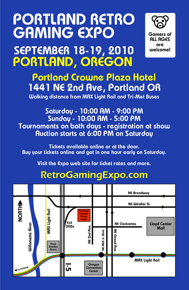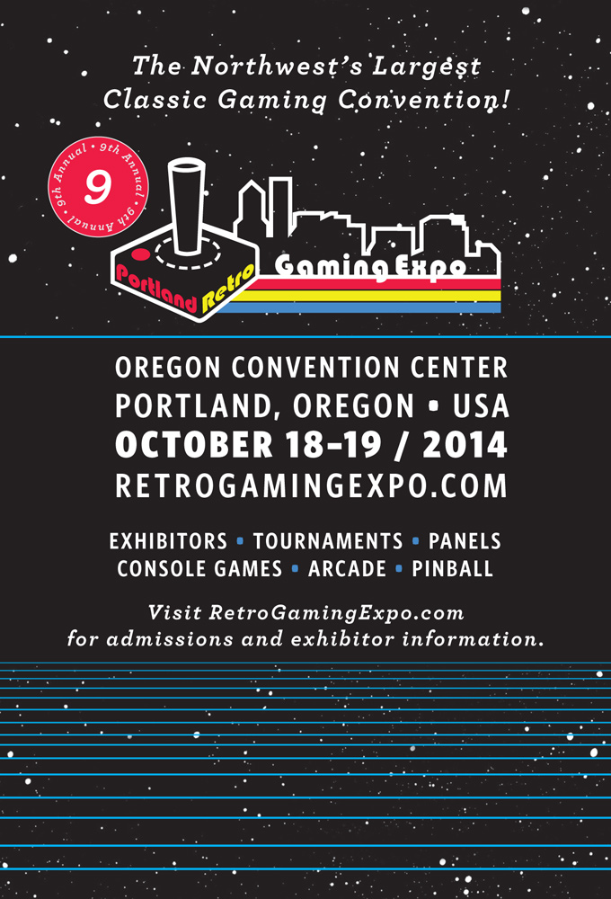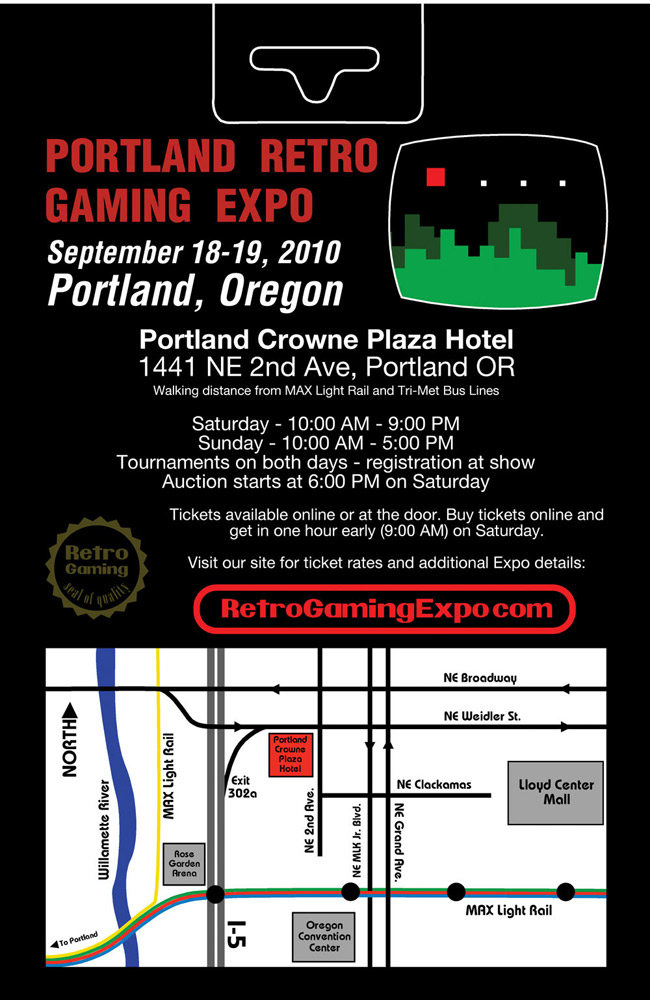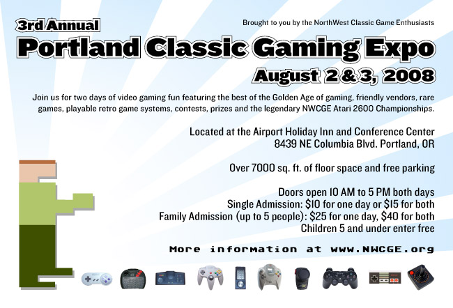 We still hadn't settled on a name yet, as you can see by the "Portland Classic Gaming Expo" name. Atari 2600 Pitfall Harry makes an appearance.