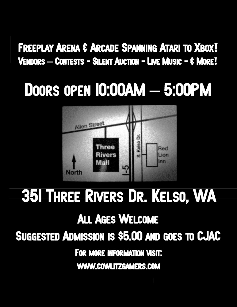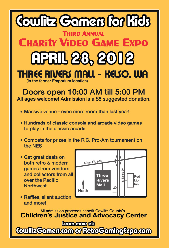 We created this flyer on short notice early in 2012 to have something to distribute at the Cowlitz Gamers for Kids expo in April of that year. This is the first flyer for a PRGE event at the Oregon Convention Center.